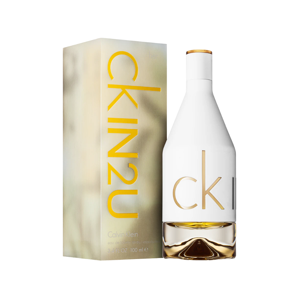 CK IN2U Her is an energetic, citrus-floral fragrance. It dazzles at the top with a burst of pink grapefruit fizz and Sicilian bergamot, transitioning into a sweet, playful heart of sugar orchid. It settles warmly onto a base of neon amber and rich vanilla soufflé.